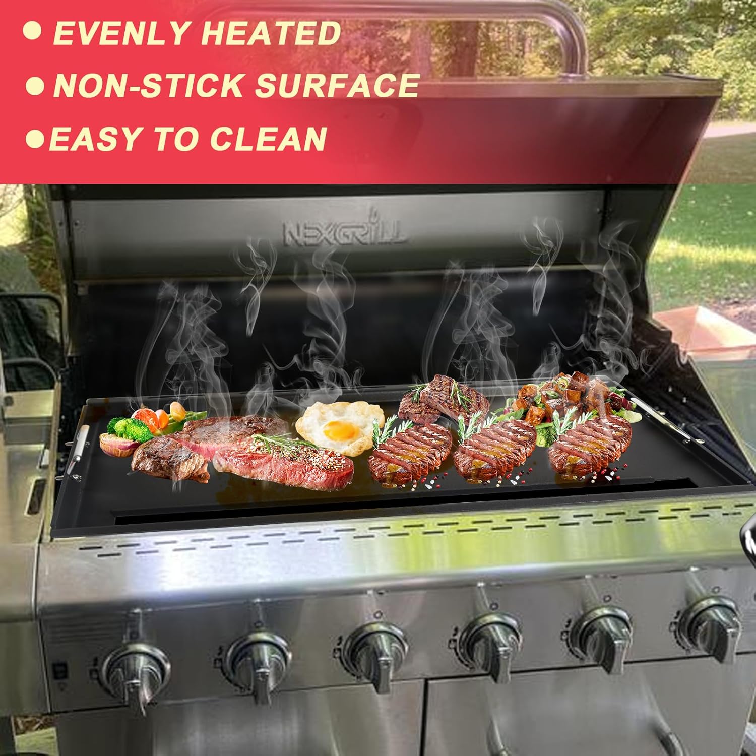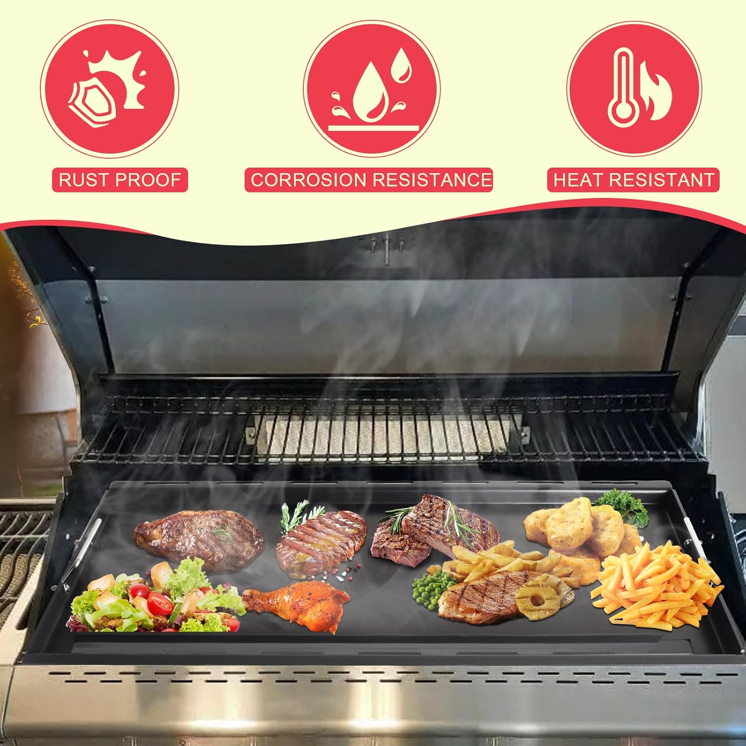 - Built to Last & Cook Like a Pro: Why settle for warped, uneven griddles? Crafted from premium 4mm carbon steel, this heavy-duty plate distributes heat evenly and handles high-heat searing, pancakes, or veggies without warping. Its rugged design resists rust and scratches, unlike thin competitors. Whether you're flipping burgers or stir-frying, this flat griddle top plate for nexgrill replacement parts 5&4 burner griddle insert outperforms Cast iron with faster preheating