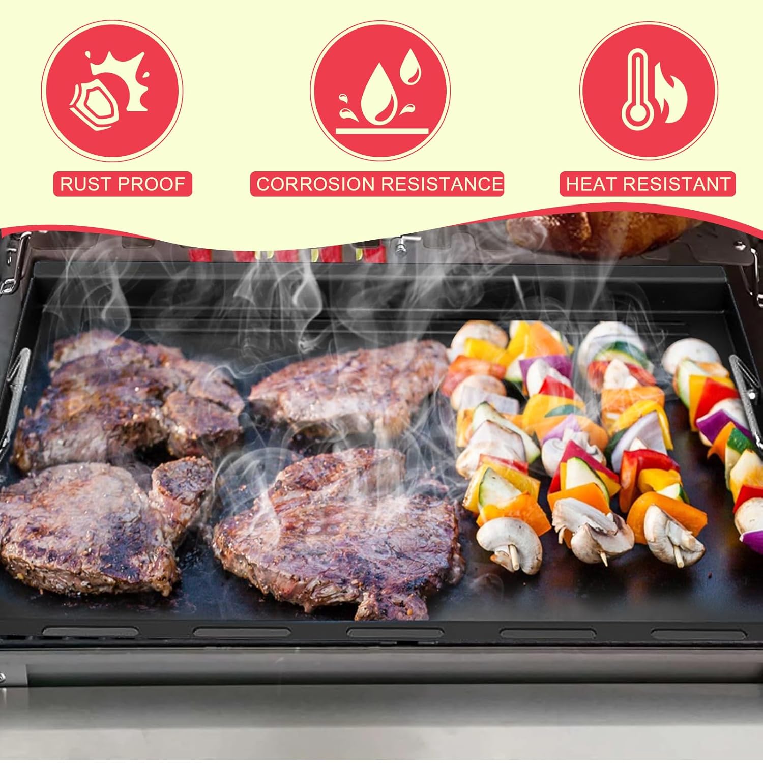 - Built to Last & Cook Like a Pro: Why settle for warped, uneven griddles? Crafted from premium 4mm carbon steel, this heavy-duty plate distributes heat evenly and handles high-heat searing, pancakes, or veggies without warping. Its rugged design resists rust and scratches, unlike thin competitors. Whether you're flipping burgers or stir-frying, this flat griddle top plate for weber griddle insert spirit 300 outperforms Cast iron with faster preheating