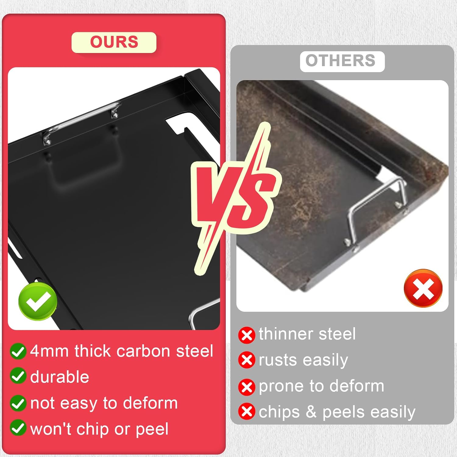 - Built to Last & Cook Like a Pro: Why settle for warped, uneven griddles? Crafted from premium 4mm carbon steel, this heavy-duty plate distributes heat evenly and handles high-heat searing, pancakes, or veggies without warping. Its rugged design resists rust and scratches, unlike thin competitors.Whether you're flipping burgers or stir-frying, this flat griddle top plate for weber Original parts 7637 outperforms cast iron with faster preheating.