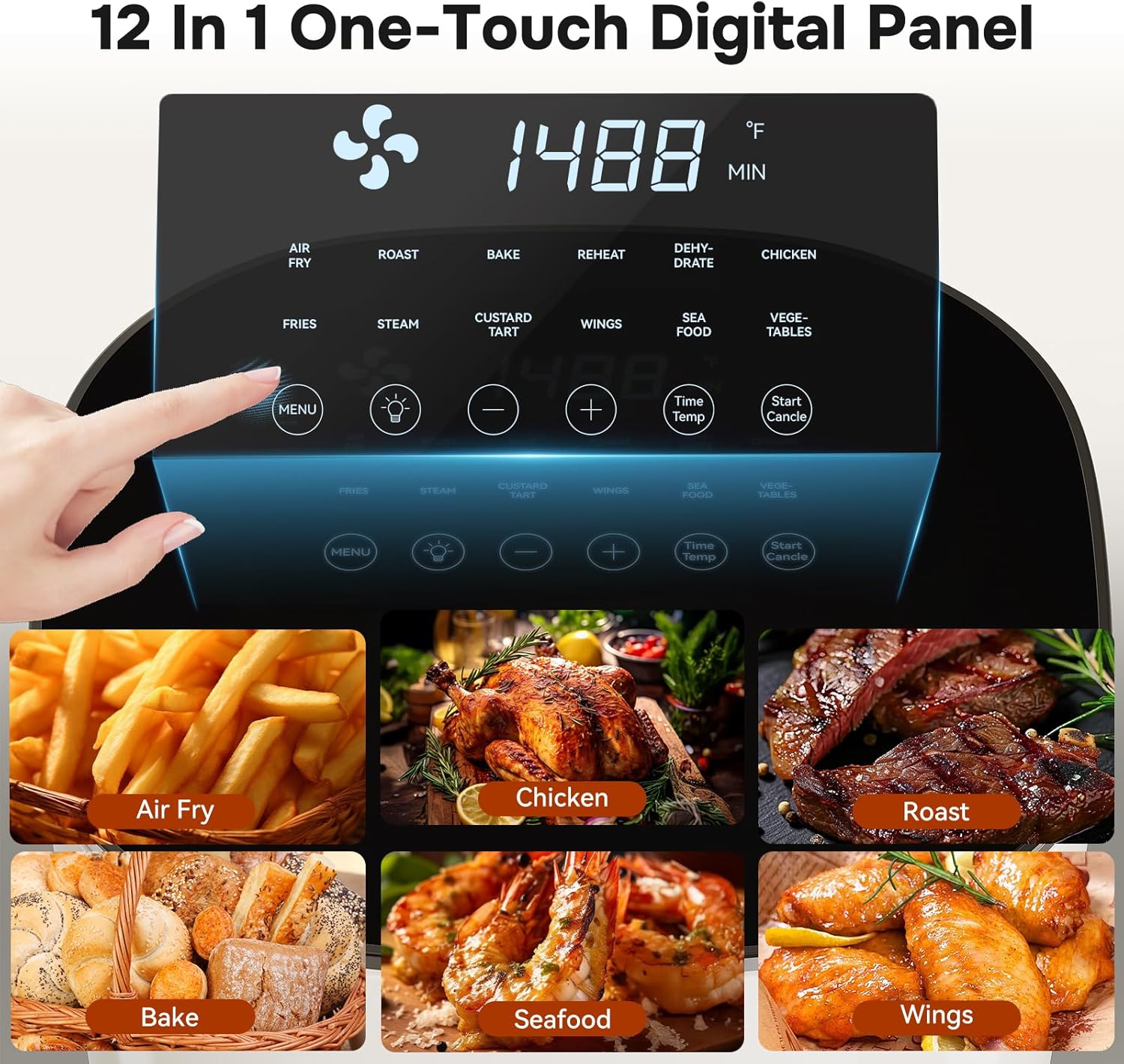 - Fast Cooking & Simplified Set-Up : With advanced rapid air circulation technology and 12-in-1 preset modes, makes you prepare meals quickly and easily. From crispy fries and juicy wings to roasted veggies and desserts, itβs your all-in-one kitchen solution for busy days