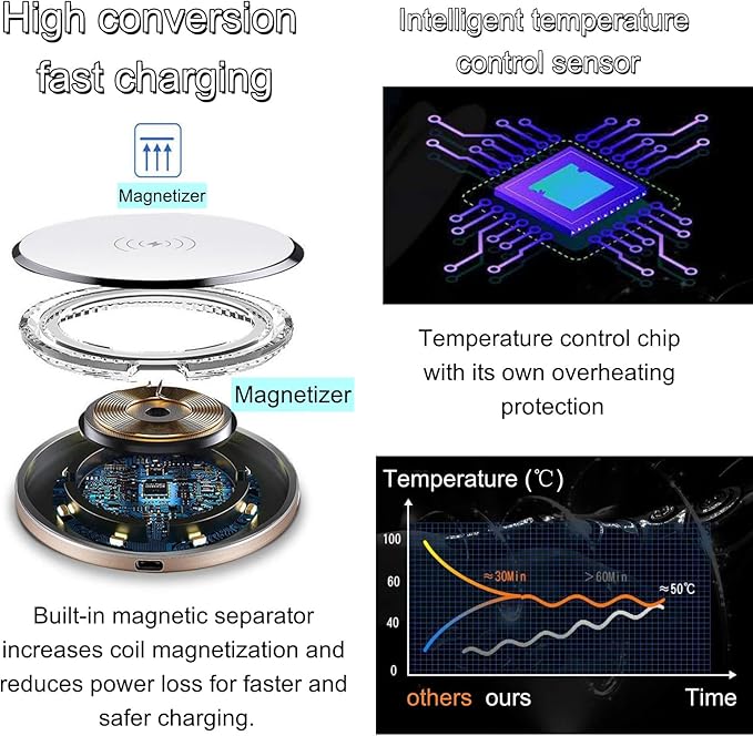 - INTELLIGENT FAST CHARGING: 15W QC3.0 fast charging with magnetic isolation tech (30% flux boost) keeps coaster cool while charging all Qi devices (kinds of smart products and earbuds).