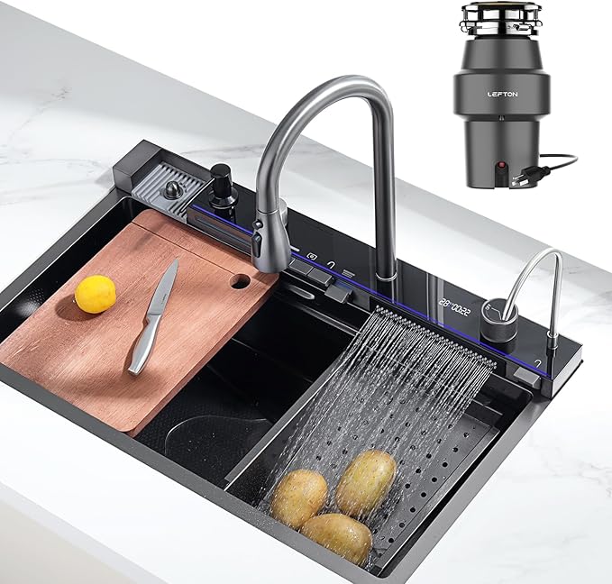 - Sink Dimensions: 29.5"L x 18.25"W x 9"D; Garbage Disposal Dimensions: 6 11/16” W x 12 5/8” H; 1/2 HP garbage disposal with power cord, 2500 RPM. NOTE: The drain control device need to remove from the sink when install the garbage disposal;