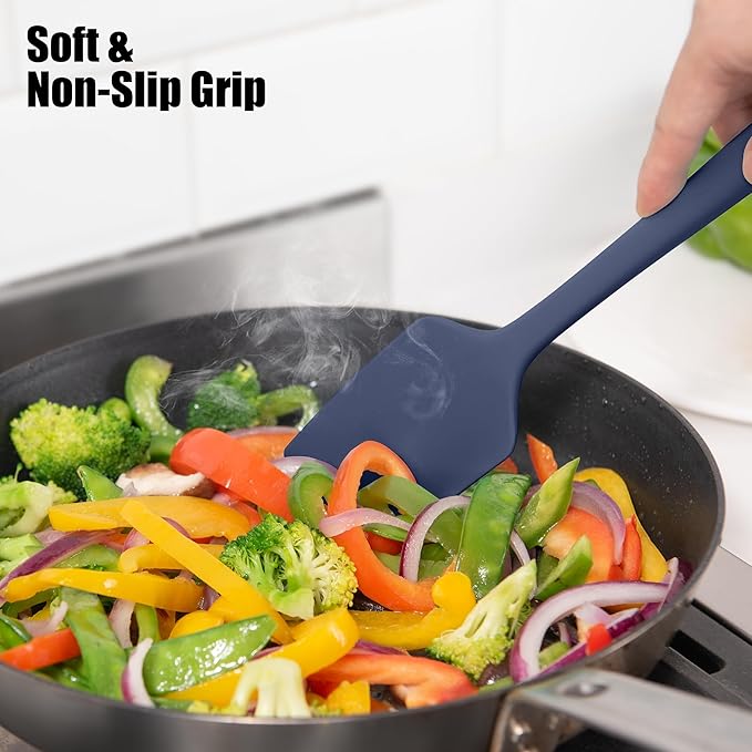 - [Why does non-stick cookware need a Doosu silicone spatula?] Silicone spatulas are essential for non-stick cookware because they are gentle on surfaces yet durable. Designed to prevent scratches and damage, they preserve the non-stick qualities, ensuring food releases smoothly and cookware stays easy to clean. With high heat resistance, silicone spatulas won’t melt or deform, even at high temperatures. Doosu cooking spatula protects your cookware and simplifies cooking.