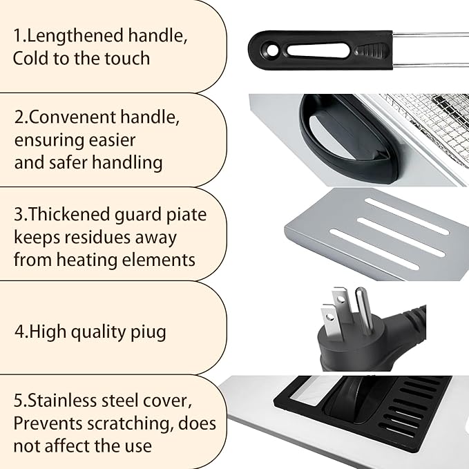 - DEEP FRYER with LARGE CAPACITY - With a generous 5.3-quart capacity, this deep fryer empowers you to effortlessly prepare scrumptious meals for family and friends alike. Its capacious interior accommodates substantial volumes of food, minimizing the need for frequent batches and saving valuable time.