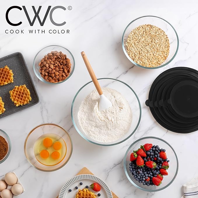 COOK WITH COLOR 12 Pc Glass Mixing Bowl Set with Lids – Borosilicate Glass Nesting Bowls for Cooking, Baking and Meal Prep, Black