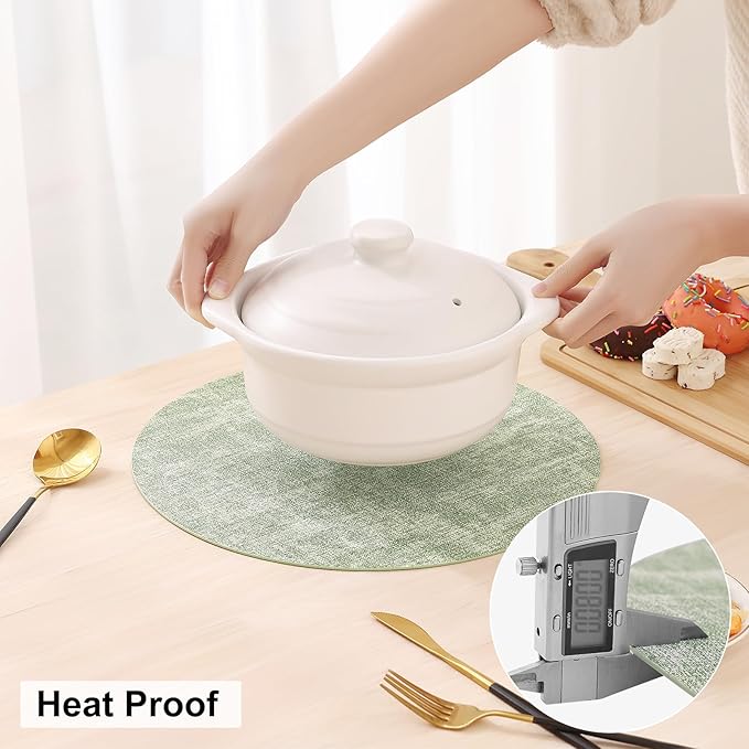 - PROTECT YOUR TABLE: the thickened placemats (0.08 inch/ 0.2 cm) ensure the heat won’t transfer to your cherish table. Highest heat-resistant can amount to 212 °F (100 °C), from leaving a white heat mark