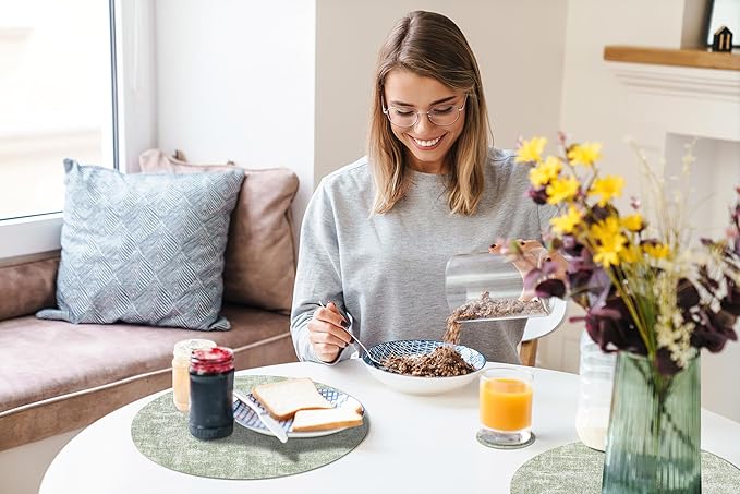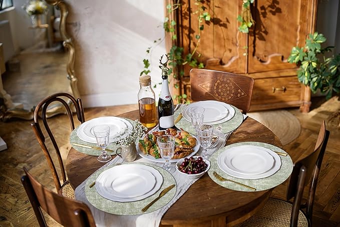 - MATCH HOME DECOR: classy linen pattern textured placemats go great with most family's decoration. You will receive many compliments from guests. Available in more colors and designs, great for party, holiday gatherings, etc