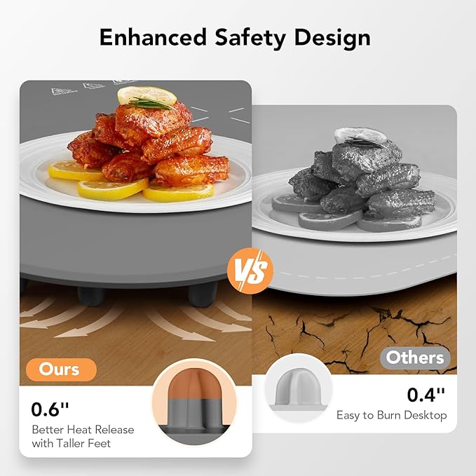 - [Customized Comfort] Dial in the perfect temperature with our 7-level temperature-controlled food warming mat. The 12-hour auto shut-off feature ensures convenience and caters to a variety of food preferences for a smooth dining experience