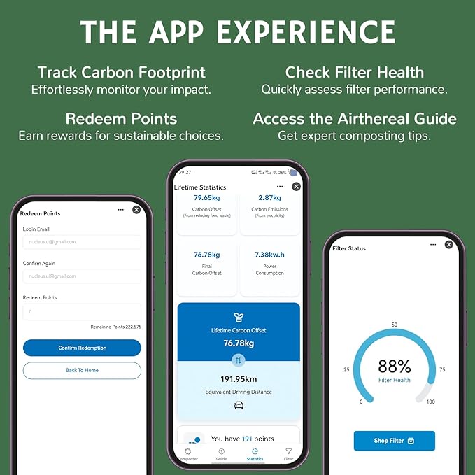 - โป๏ธ WiFi Connectivity: Monitor composting progress and track your carbon footprint in real-time through a user-friendly mobile app.