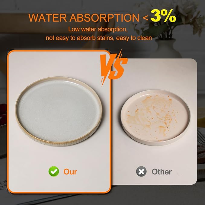 - Eco-Friendly & Health-Certified:Crafted from premium natural clay and fired at 2340°F for 13.5 hours, our stoneware dinnerware sets are lead-free, cadmium-free, and BPA-free. This ensures safe, toxin-free meals for families while maintaining chip-resistant durability