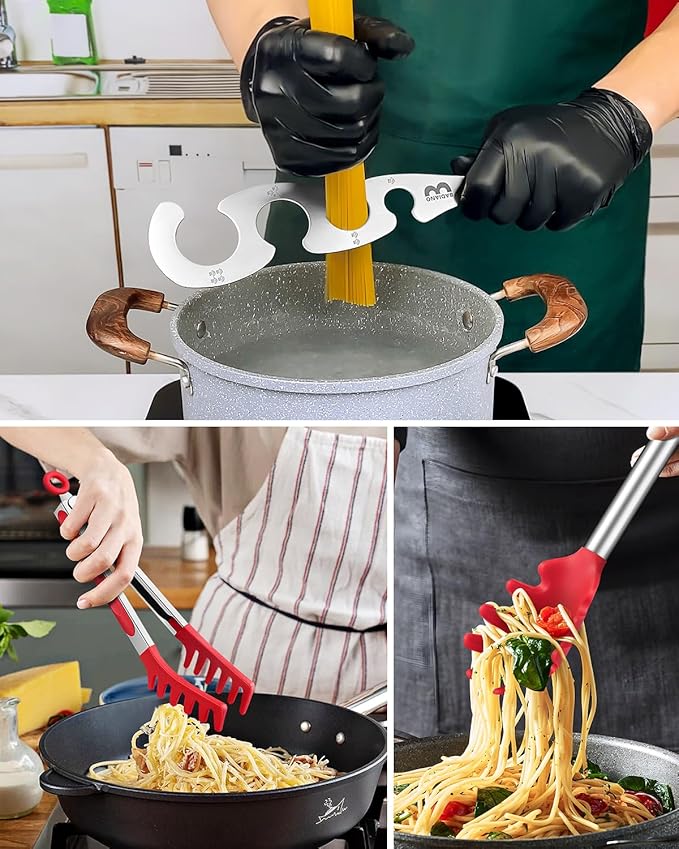 - Silicone Pasta Tong: BPA-free food-grade silicone ensures safety. Tooth-shaped heads make spaghetti pickup effortless