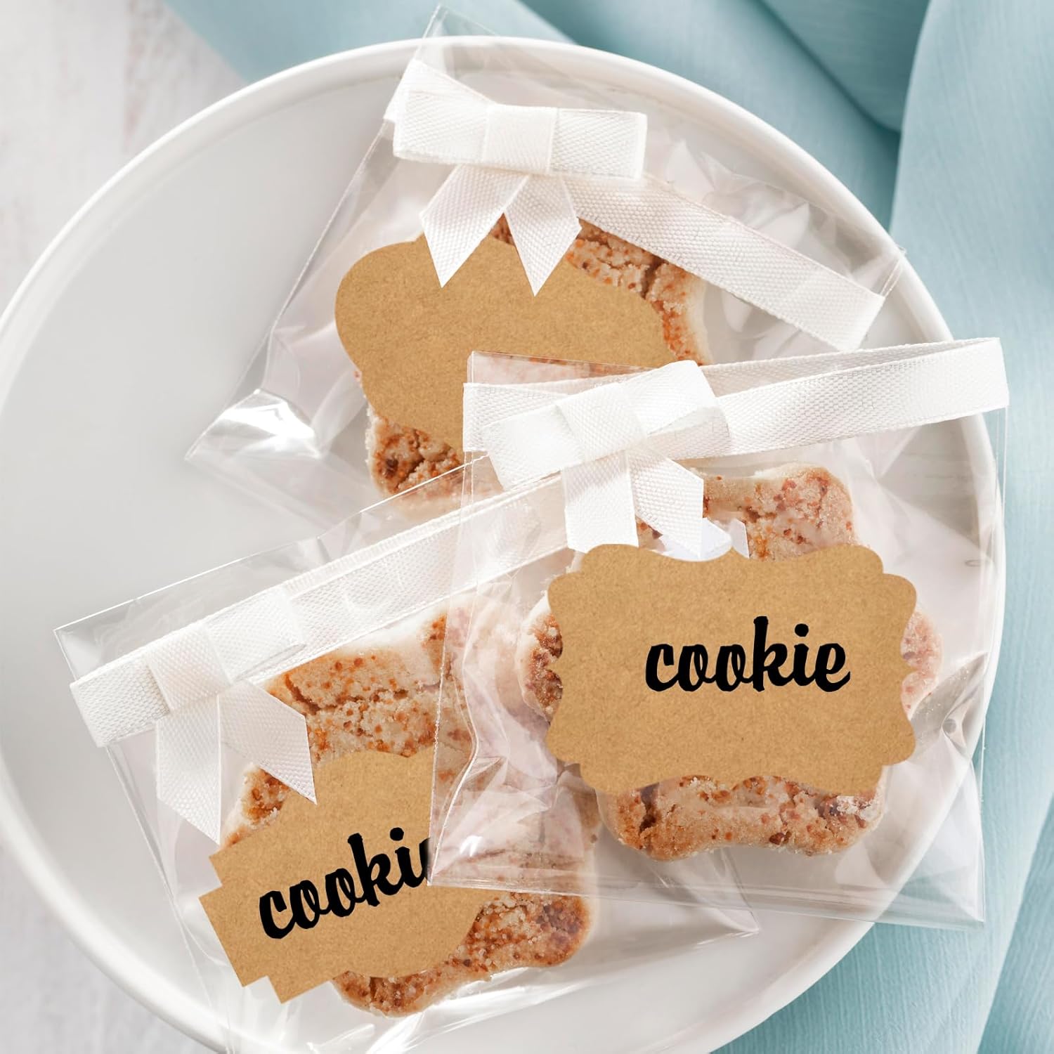 350 PCS Gift Tags Stickers Name Labels Stickers,2" x 1.2" Fancy Shape Stickers Self-Adhesive Handmade Bottle All-Purpose Jar Labels for Presents Cosmetic Decoration Jars Food Craft (Dark Kraft)