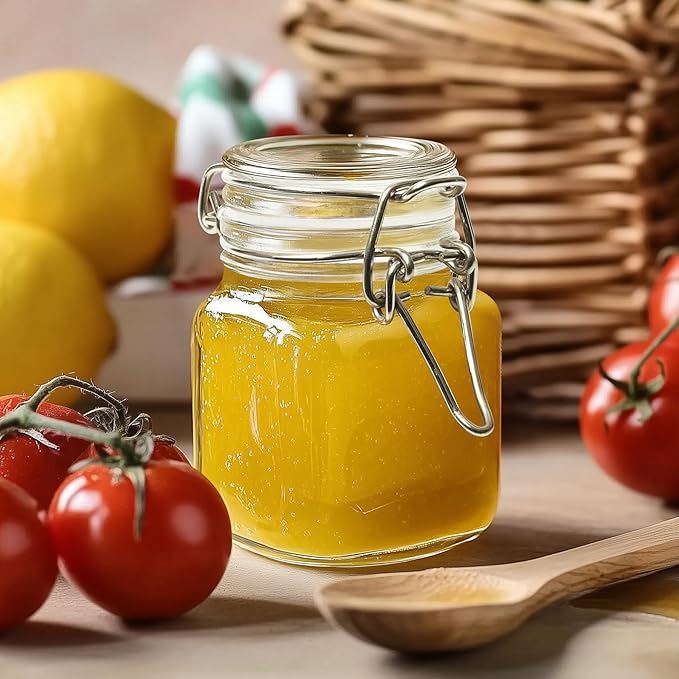 ComSaf 4 oz Glass Jars with Lid, Set of 12 Mini Airtight Glass Jars, Spice Jars, Small Mason Jar, Canning Jar Square with Seal Wire Clip Fastening, Labels & Funnels for Jam, Honey, Kitchen, Wedding