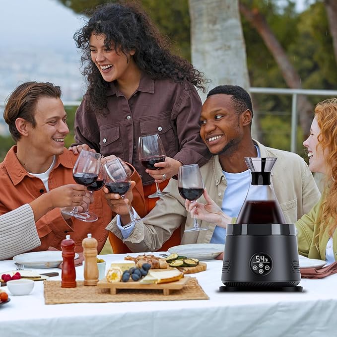 - Chill & Decanting: Unlike traditional decanters, our wine decanter with aerator can chills and maintains temperatures, ensuring crisp, nuanced flavors from first pour to last sip. The built-in wine air aerator combines sleek design with precision temperature control, making it essential for enthusiasts who value both aeration and climate mastery.