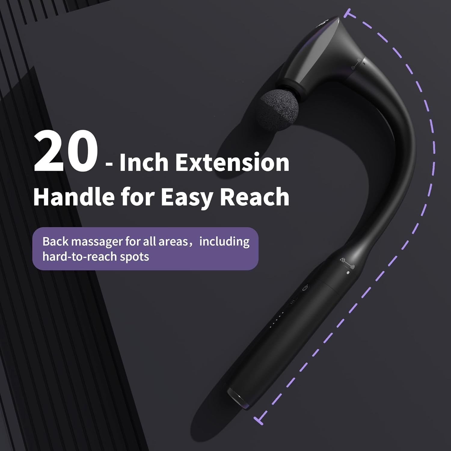 - 2-in-1 Detachable & Transformable Percussion Massage Gun: This massage gun deep tissue tool features a 20-inch ergonomic extendable handle, allowing you to easily reach your back and waist for a comfortable self-massage experience. Its detachable design allows it to be used with an extension handle for hard-to-reach areas, or detach the handle to transform it into a compact and portable small massage gun,perfect for targeting arms, thighs, shoulders, and calves without bending over. It meets all your massage needs