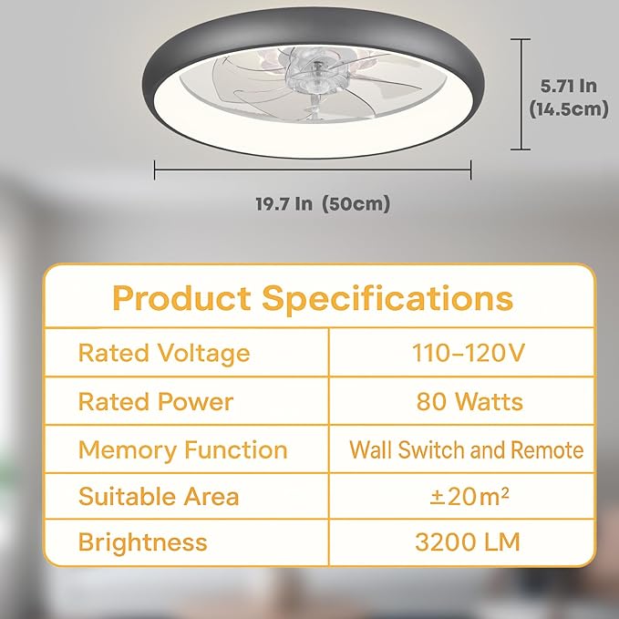 - 【Reversible Fan Motor with 6 Fan Speed】Low profile ceiling fan with 2 airflow modes. Enjoy downdraft airflow for a cooling breeze in summer, and updraft airflow to enhance air circulation in winter. Ceiling fan lights equipped with a pure copper silent motor, delivering quiet, smooth, and stable airflow. Choose from 6 adjustable fan speeds to suit your comfort needs.