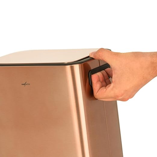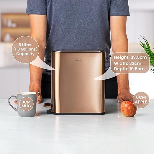 RED FACTOR Slim Small 1.3 Gallon Stainless Steel Pedal Trash Can with Soft Close Lid for Narrow Spaces – Wastebasket Bin with Removable Inner Bucket for Bathroom, Kitchen, Bedroom, or Office (Copper)