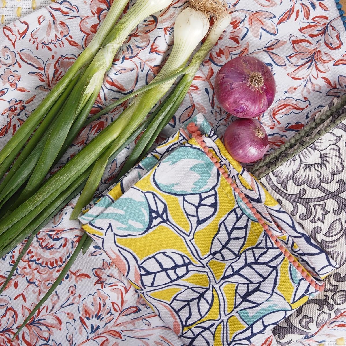 Printed Kitchen Dish Bar and Tea Towels Cotton, 18x28 inch with Trims, Cotton Dish Towel Sets (Multicolor, Set of 3)