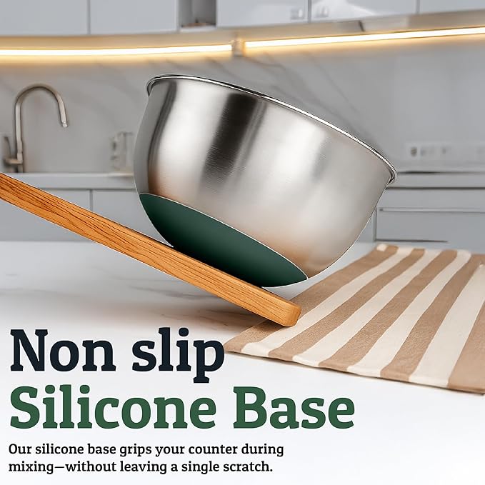 - Includes Free 15-Piece Silicone Utensil Set - This metal mixing bowl set comes complete with a bonus 15-piece heat-resistant silicone utensil collection. Ideal kitchen gift for housewarmings, new cooks, or gift-givers, this set combines everyday utility with thoughtful extras, ready to support every slice, stir, and scoop in your kitchen.