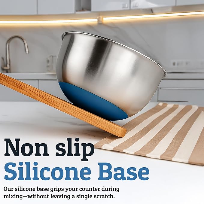 - The Ultimate Stainless Steel Mixing Bowl Set for Daily Prep - This 5-piece set is your go-to for everyday cooking, from tossing salads to whipping up pancakes. Made with premium stainless steel, each bowl includes inner measurement markings and a non-slip base to simplify every step. Whether you're prepping family meals or organizing a busy kitchen, this set helps you stay efficient, tidy, and stress-free.