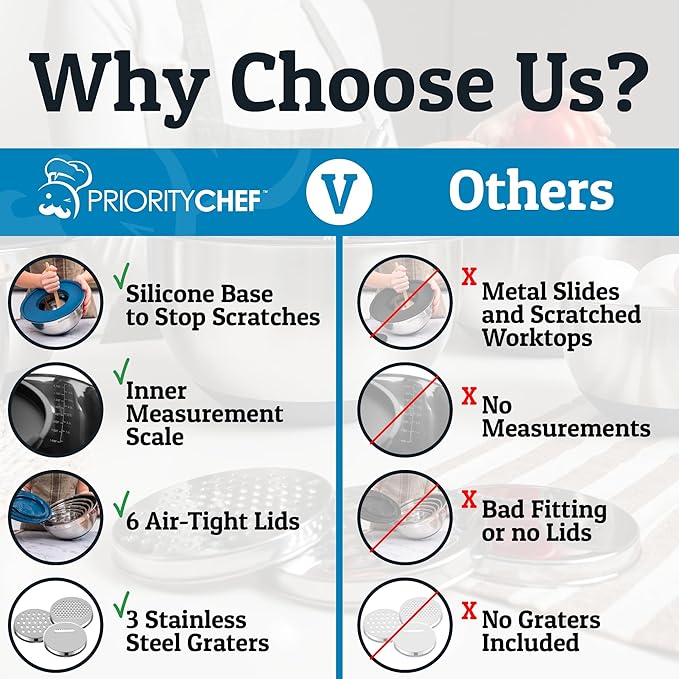 - Airtight Lids Keep Food Fresher, Longer - This stainless steel mixing bowls with lids set includes airtight, leak-resistant lids that lock in freshness and prevent spills. Ideal for storing dough, chopped ingredients, or leftovers, these bowls make meal prep and fridge organization easier for busy home cooks. Say goodbye to waste and hello to stress-free, space-efficient storage.