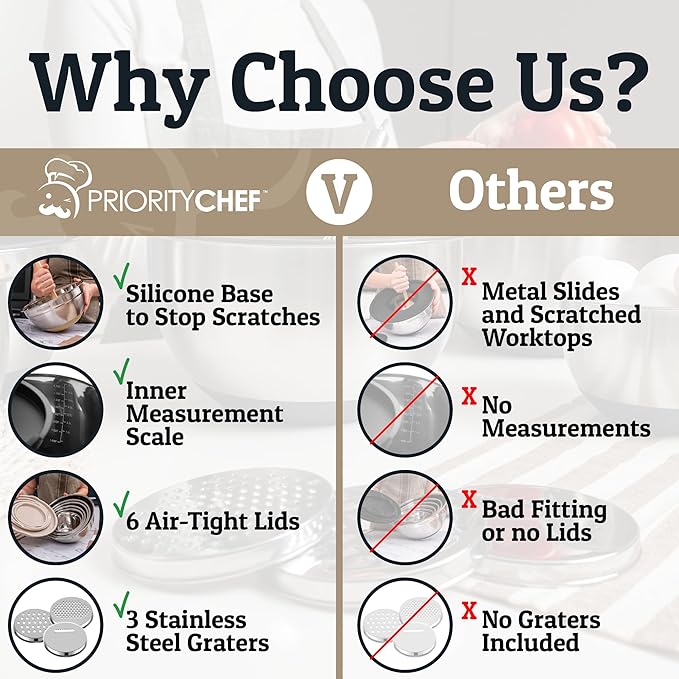 - Airtight Lids Keep Food Fresher, Longer - This stainless steel mixing bowls with lids set includes airtight, leak-resistant lids that lock in freshness and prevent spills. Ideal for storing dough, chopped ingredients, or leftovers, these bowls make meal prep and fridge organization easier for busy home cooks. Say goodbye to waste and hello to stress-free, space-efficient storage.