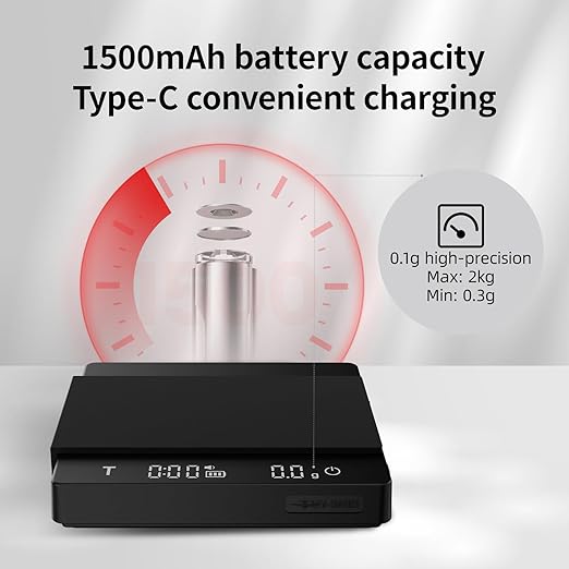 - Auto/Manual Timing: Coffee Scale with timer function is divided into normal and intelligent mode. In normal mode, the timing function can be freely controlled by single click on the T key; in intelligent mode, the timing function is automatically turned on through the solid-liquid detection function, which is more intelligent.
