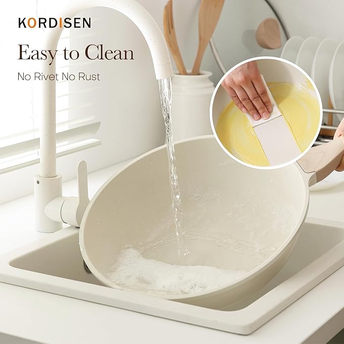 - 【Quick & Easy Cleaning】: The rivet-free, non stick surface makes cleanup effortless—just wipe with warm soapy water Designed for busy kitchens, this non stick frying pan wok saves time after every meal