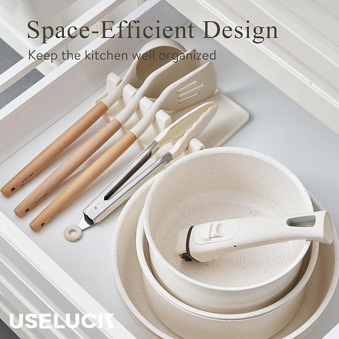 Pots and Pans Set Healthy Non toxic Non Stick Ceramic Cookware Set 21 Pcs Detachable Handles, Oven Safe, Induction Dishwasher, Stackable Frying Pan (PFOS, PFOA Free),Cream White