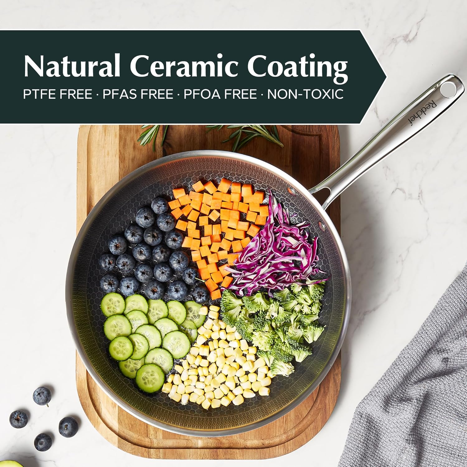 - SUPER NONSTICK: Redchef frying pans nonstick combines a honeycomb structure with a healthy ceramic coating for dual nonstick performance. Effortless food release and easy cleanup make cooking enjoyable. Perfect for frying eggs or sautéing vegetables with minimal oil