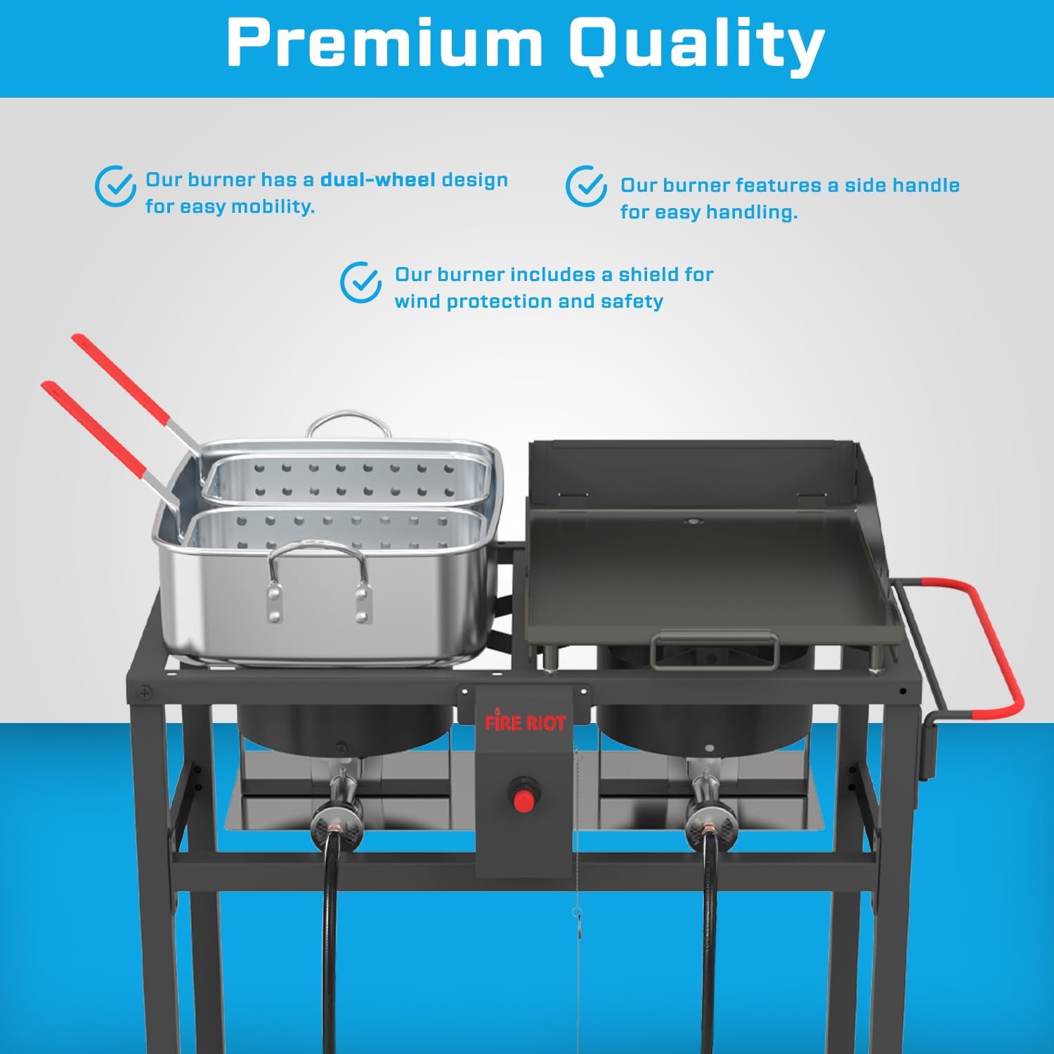 - PORTABLE & EASY TO MOVE: Designed with the on-the-go chef in mind, this outdoor wok burner features sturdy built-in wheels that allow for effortless transport, even across uneven terrain. Its lightweight yet durable construction means you can take it anywhere double propane burner — be it a campsite, a tailgate party, or a family reunion in the park. Enjoy the freedom to cook wherever your adventures take you, without compromising on convenience or quality.