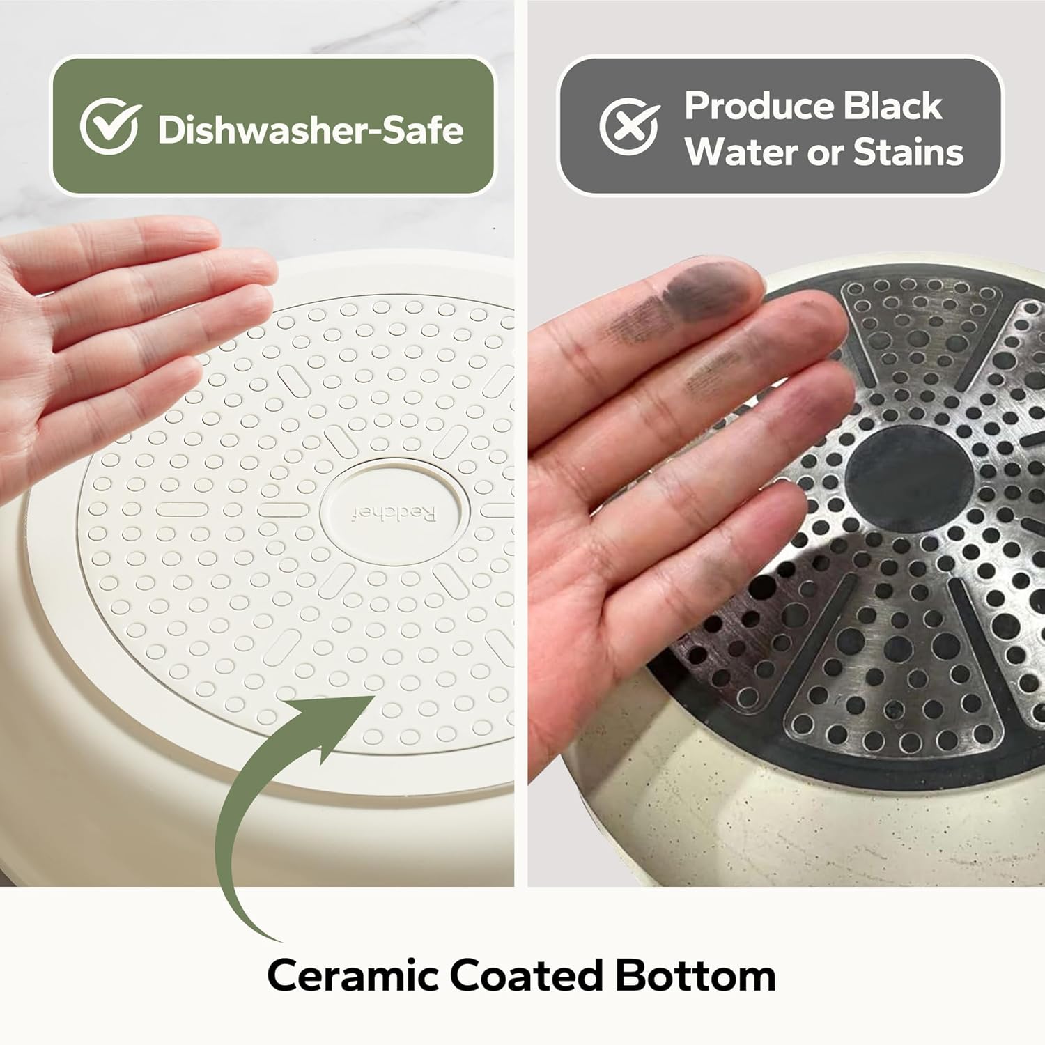 - Non-Toxic Ceramic Coating: Redchef's PTFE/PFOA/PFAS-free ceramic coating ensures healthy, worry-free cooking. Eggs and steaks glide off effortlessly, while the healthy design prioritizes daily meal safety—‌combining the scratch-resistant durability of ceramic frying pans with the trusted smoothness of premium nonstick frying pans