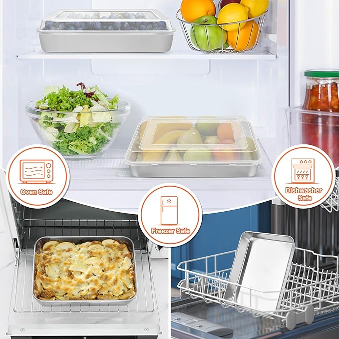 Herogo Baking Pan with Lid, 7 x 9 Inch Stainless Steel Nonstick Deep Pan, Rectangle Cakes Bakeware with Lid for Brownies Casseroles, Non Toxic & Dishwasher Safe, Set of 2