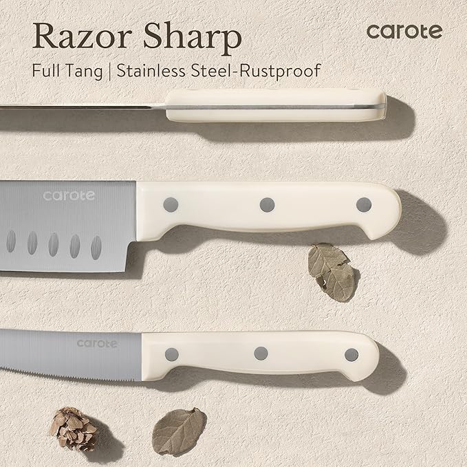 CAROTE ICE 35pcs Pots and Pans Set, Nonstick Cookware Sets, White Granite Induction Cookware with Kitchen Knife Set