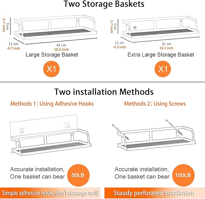 PUSDON Metal Wall Hanging Basket 2 Packs DIY Suitable for Multiple Scenes - Large Bronze Hollowout
