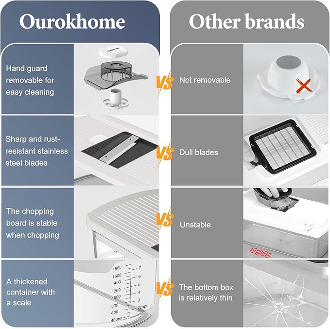 - A kitchen essential gadgets - Whether you're a novice cook or a seasoned pro, the Ourokhome mandolin slicer is a must-have in any kitchen. It's versatile, easy and safe to use and store