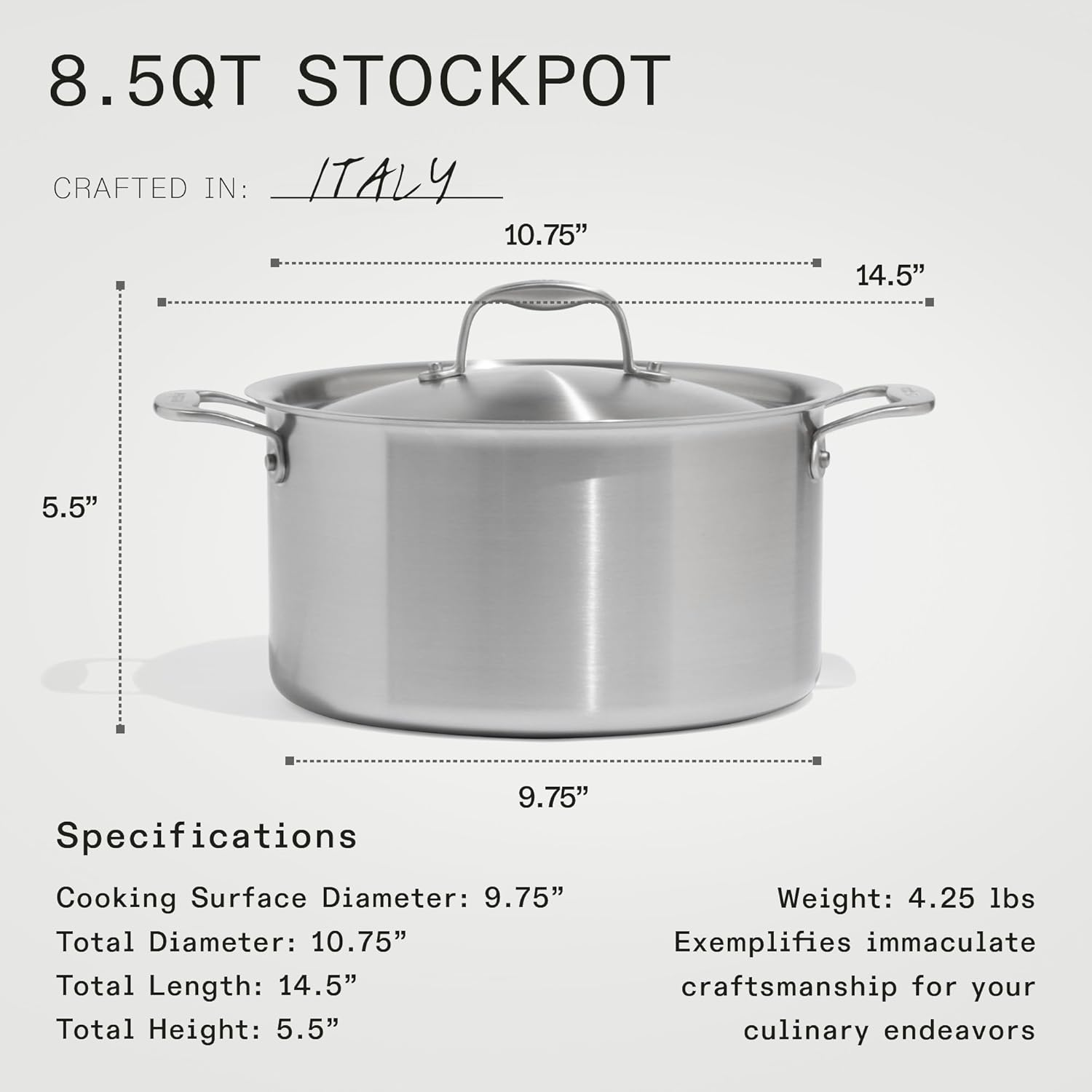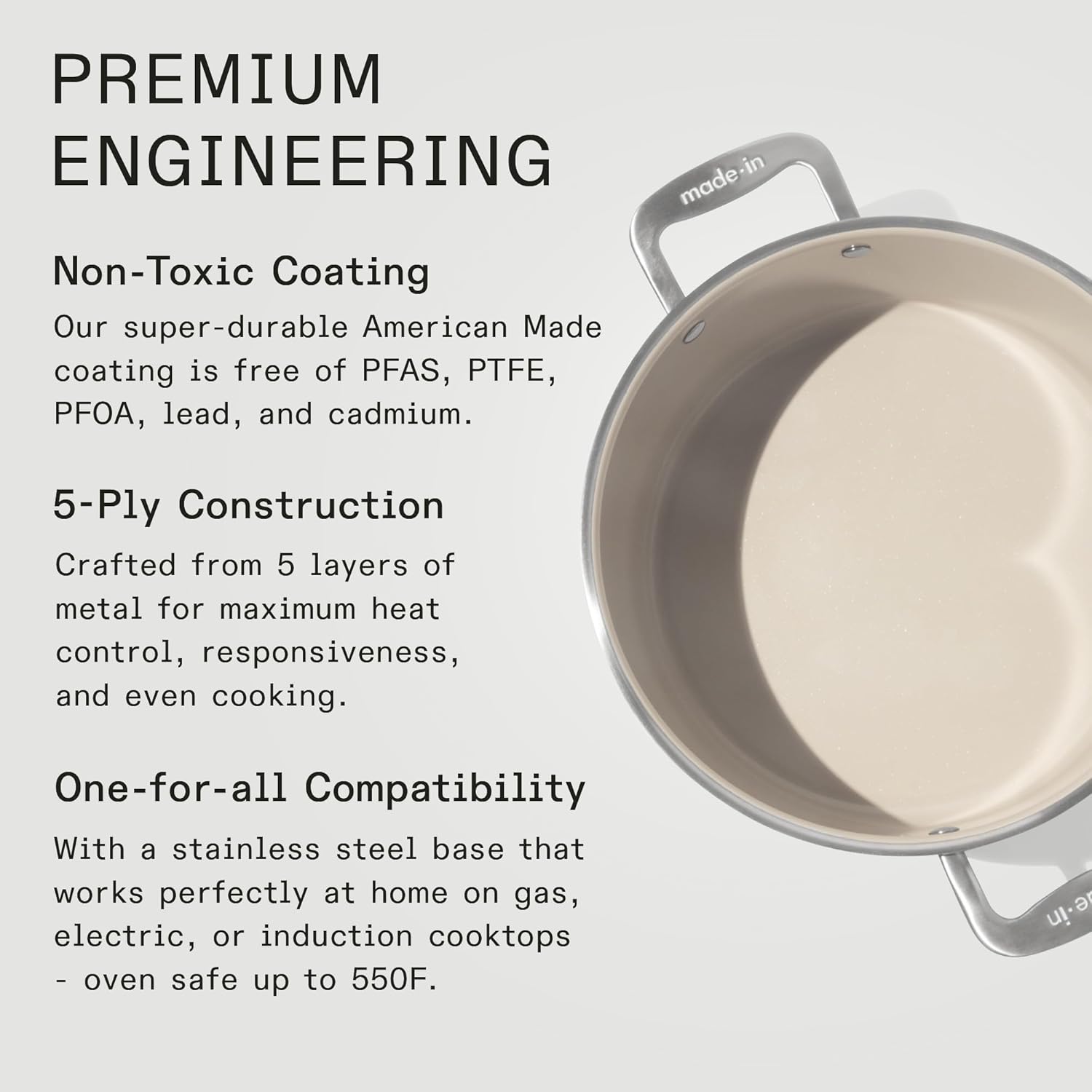 Made In Cookware - 8 QT Ceramic Non Stick Stock Pot with Lid - 5-Ply Stainless Clad with Stay-Cool Handle - Professional Cookware - Crafted in Italy - Induction Compatible
