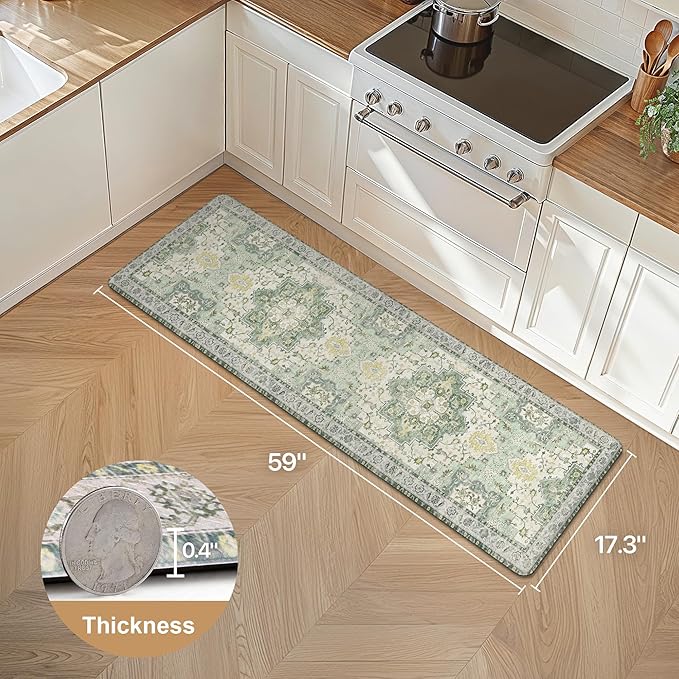 GENIMO Kitchen Mats for Floor, Washable Anti Fatigue Mat for Cushioned, 17.3"x59", Waterproof Kitchen Rugs, Non Slip Foam Comfort Standing Mat Rug for Home, Runner, Sink, Laundry, Light Green