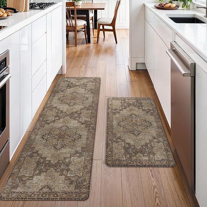- Well Designed: Meticulously crafted with a focus on quality, GENIMO kitchen mats for floor skillfully intertwine modern, classic, and boho styles, elegantly embodying the sophistication and charm of vintage aesthetics. These kitchen decor and accessories feature intricate floral patterns and fascinating colors that are harmonized in tone, creating a captivating visual experience that enhances any home decor, apartment decor, or house setting—making them true home essentials