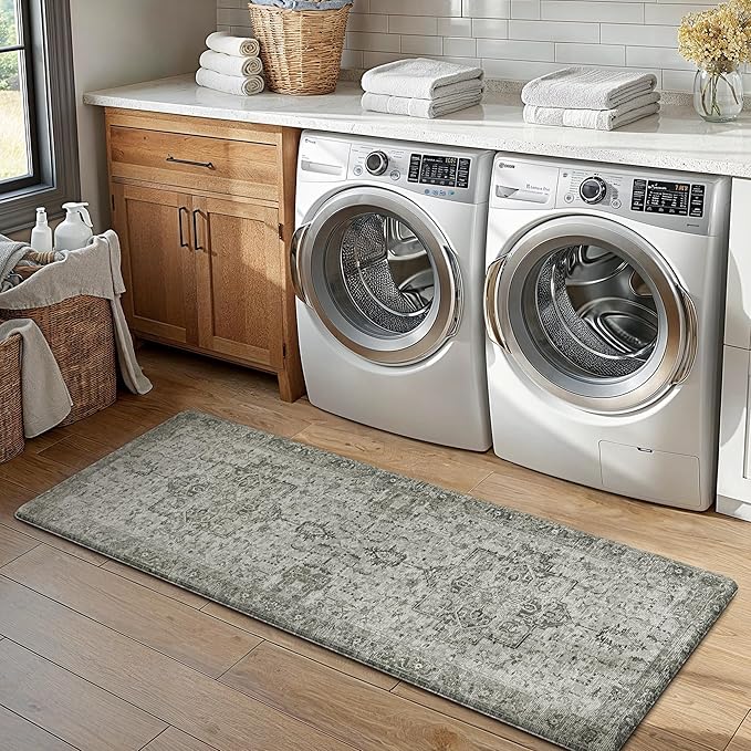 GENIMO Kitchen Mats for Floor, Washable Anti Fatigue Mat for Cushioned, 17.3"x59", Waterproof Kitchen Rugs, Non Slip Foam Comfort Standing Mat Rug for Home, Runner, Sink, Laundry, Vintage Grey