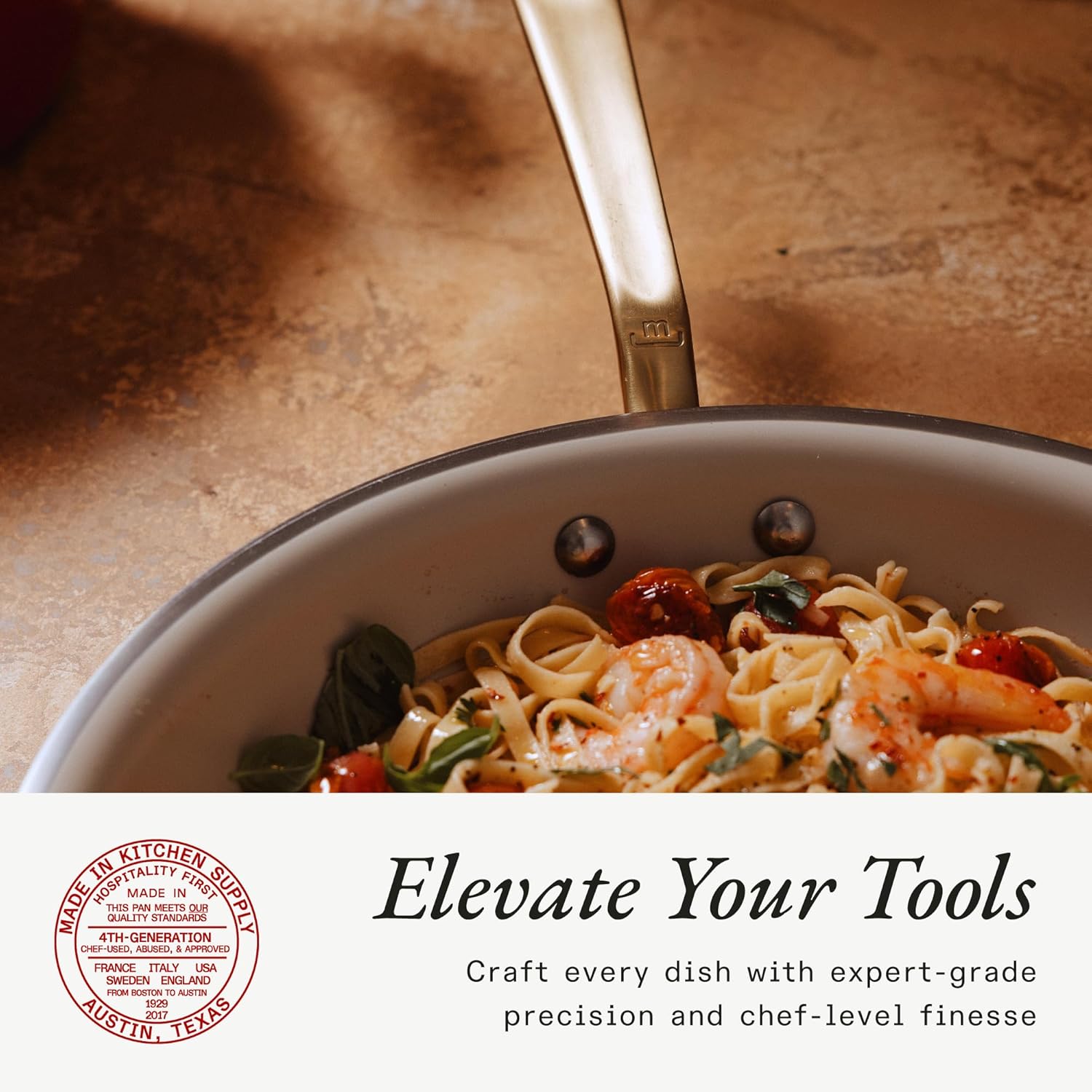 Made In Cookware - 12" Ceramic Non Stick Frying Pan (Antique Brass Handle) - 5-Ply Stainless Clad with Stay-Cool Handle - Professional Cookware - Induction Compatible