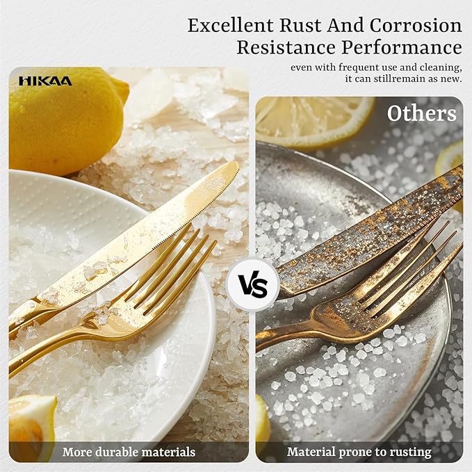 HIKAA Forged Silverware Set Stainless Steel Flatware Set,Service for 4,Matte Satin Polished Cutlery Set,Dishwasher Safe (Gold, 20PCS)