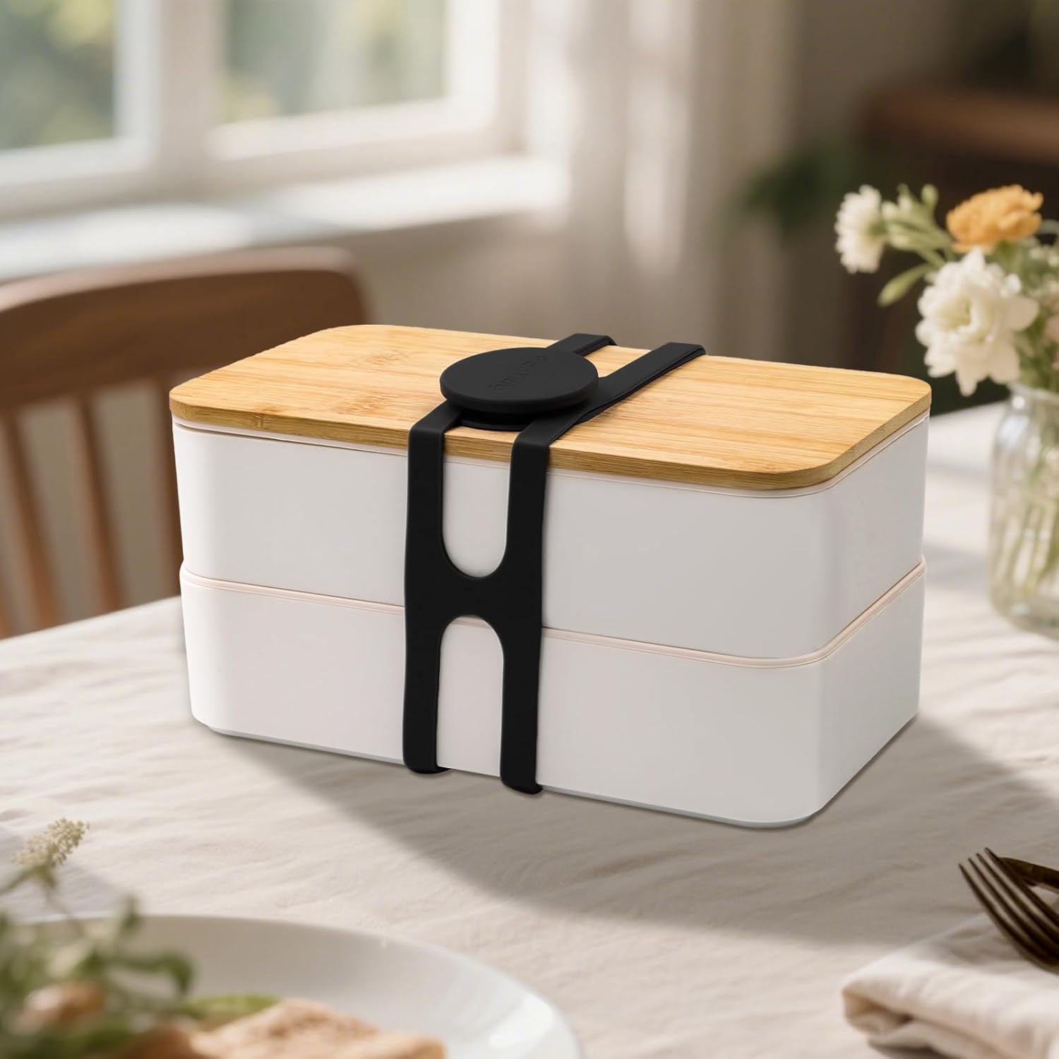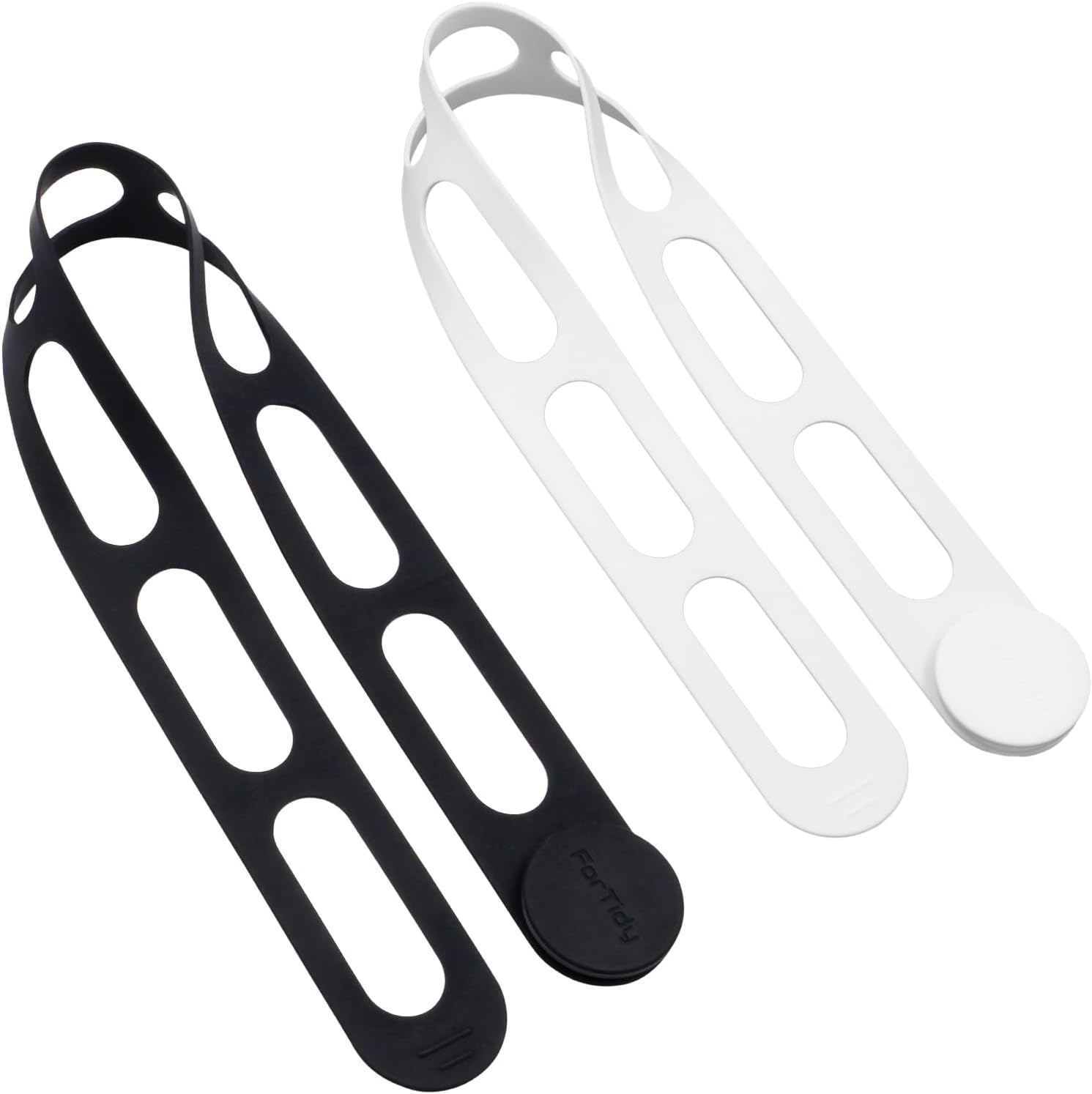 Silicone Utility Strap for Slow Cooker Lid, Pot, Bento Box, 21.65 In Reusable Elastic Self-Lock Silicone Tie for Bundling or Organizing Curtain, Cords, Yoga Mat, Camping Mat, 2pcs (Black&White)