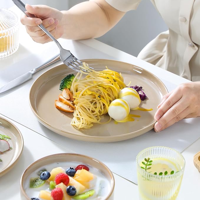 - 【Dinnerware set for 8】 Includes 8 dinner plates (10.25"), 8 salad plates (8.25"), and 8 bowls (26oz), perfect for serving everyday meals or special occasions.