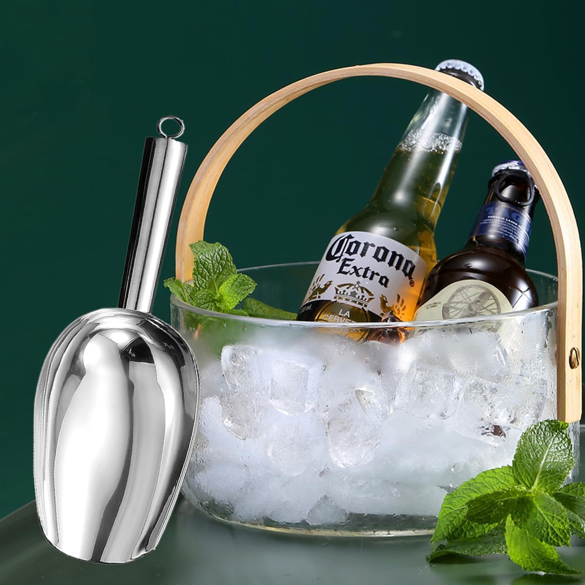- 【Easy to use】: It's much easier to use than plastic ice scoops or tongs,polished finish keep scoop always smooth that the Ice don't stick to it, and you can get ice exactly as expected. Also,you can use this sturdy metal scoop to break up connected ice cubes.