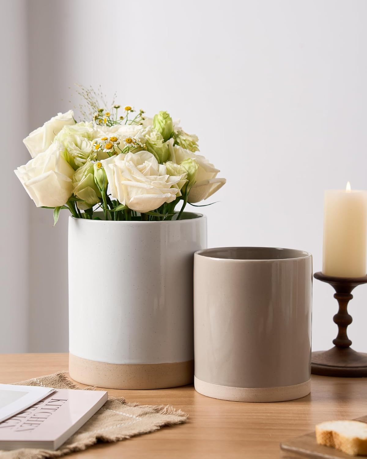 - 【Multi-Functional Cooking Utensil Holder】These kitchen utensil holders do more than just store cooking utensils. They also double as elegant vases, offering a stylish home for hair tools like combs, can be used as a storage container for freshly baked bread, even can be used as an ice bucket to cool champagne and wine. Their versatility knows no bounds!