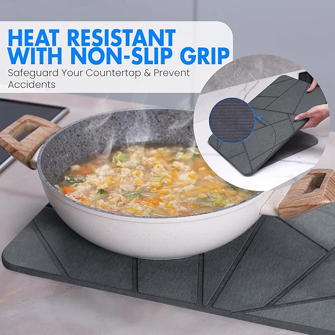 - VERSATILE KITCHEN ESSENTIAL: This stone drying mat for kitchen counter serves as an efficient alternative to traditional dish racks for kitchen counters. Its modern design allows for optimal drying without creating clutter, making it an ideal solution for any kitchen setup, large or small.