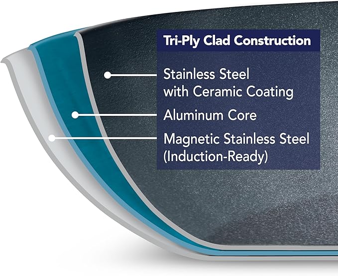 - Tri-Ply Clad Construction: Ensures precise and even heat distribution across the entire pan for superior cooking results