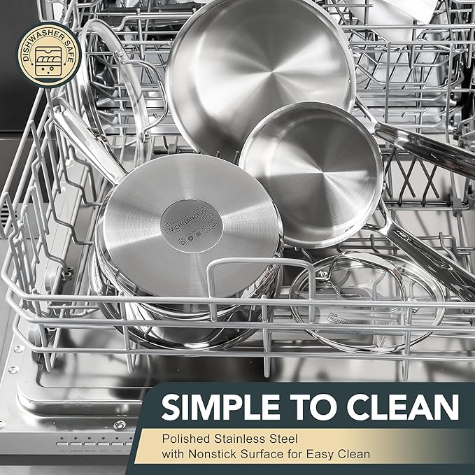 - Effortless Cleanup: Our stainless steel sauce pan set is 100% dishwasher safe, saving you time and effort after every meal. Just place it in the dishwasher—no scrubbing or soaking needed. Enjoy stress-free cleanup.