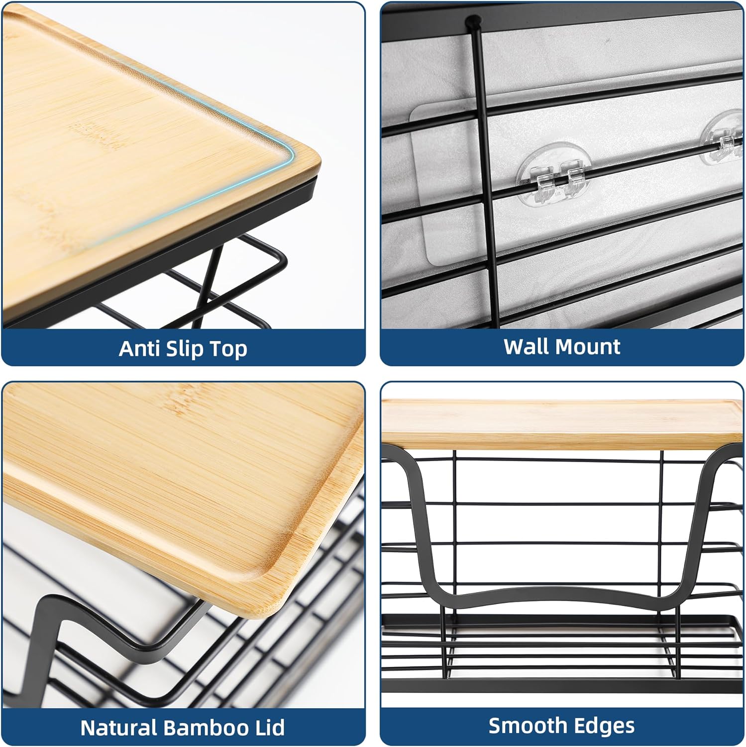 - Easy to Use & Install: Both dispensers feature a large opening for quick trash bag retrieval and a narrow base to prevent sliding. The bamboo tops on both sizes double as shelves for extra storage, enhancing kitchen storage & organization. The large dispenser’s bamboo top includes an anti-slip groove for added functionality